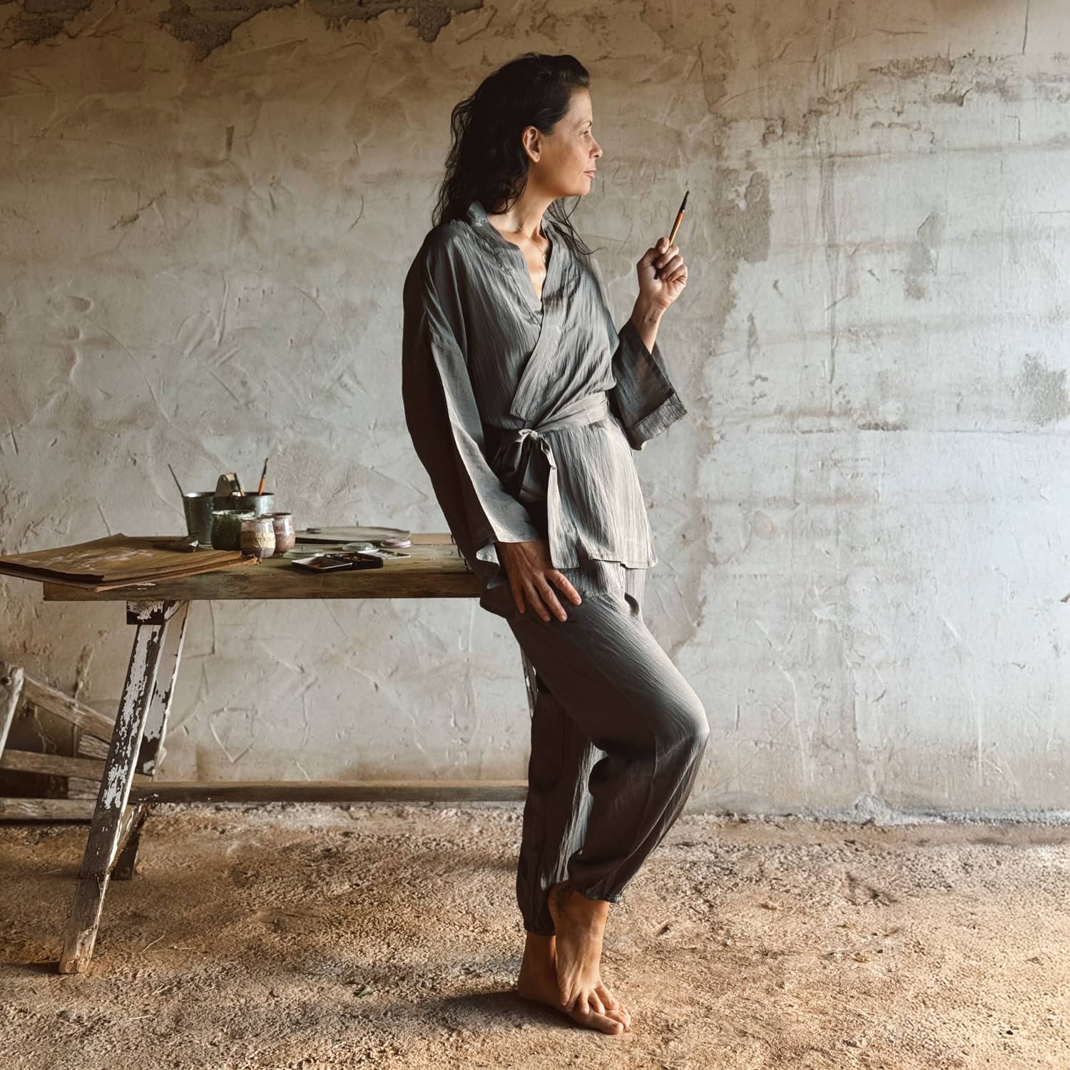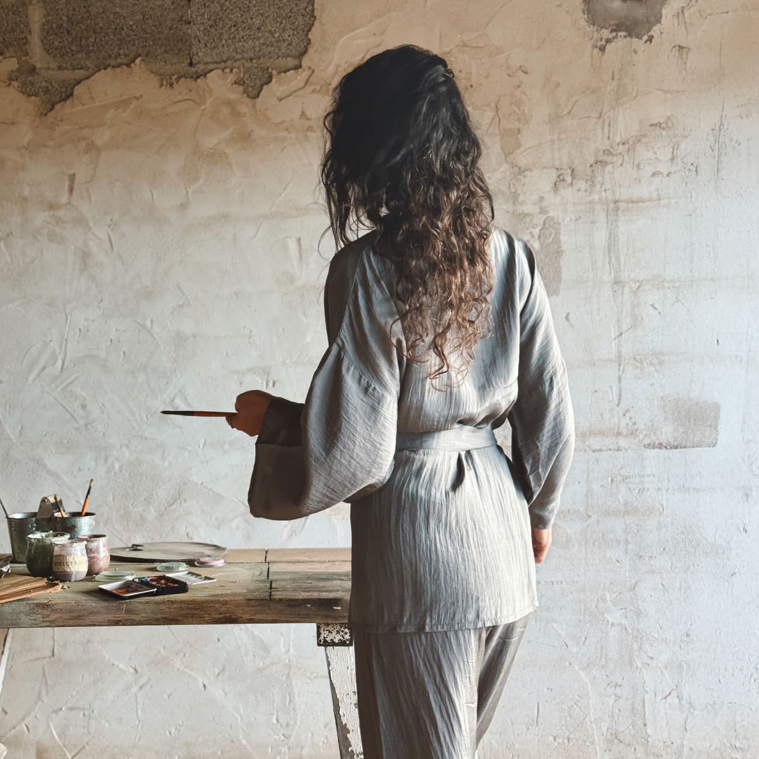 Yoko Kimono - Women - HS Habotai Silk 40 - S045 Stone Grey