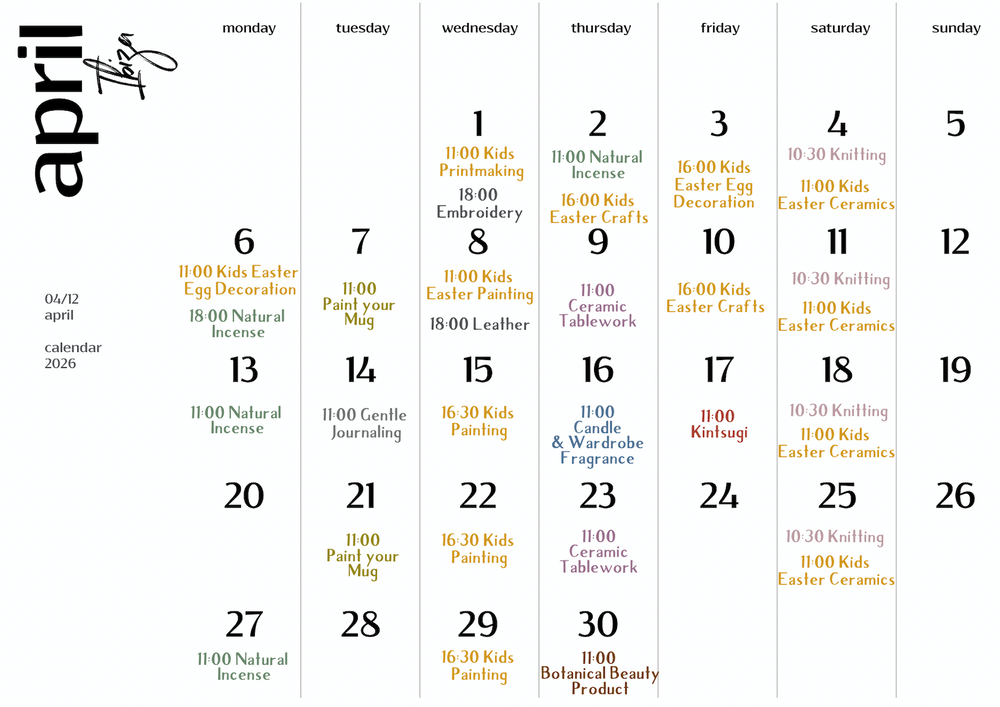 Creative community: Wishing to gather four kindred people to open a creative workshop session? Join our whatsapp group for KIDs or GROWN-UPs and manifest your desire: we need to know your preferred workshop, how many participants and your flexible date/timing. Fingers crossed!