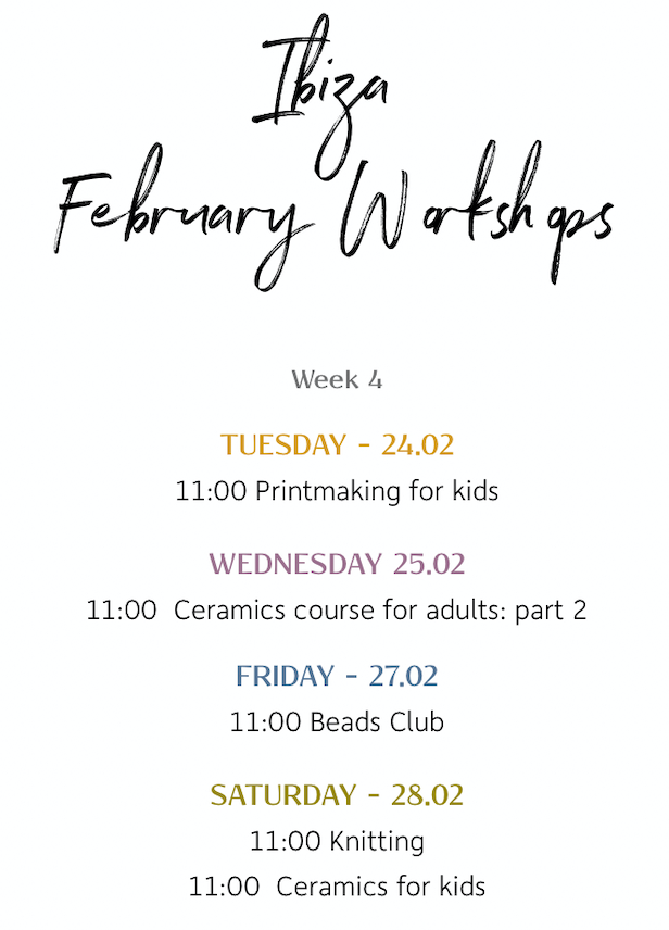 Private workshops: Four or more? Send your request to book your creative moment, to make it happen four participants or the equivalent amount is necessary. Each workshop page below has an email link.
