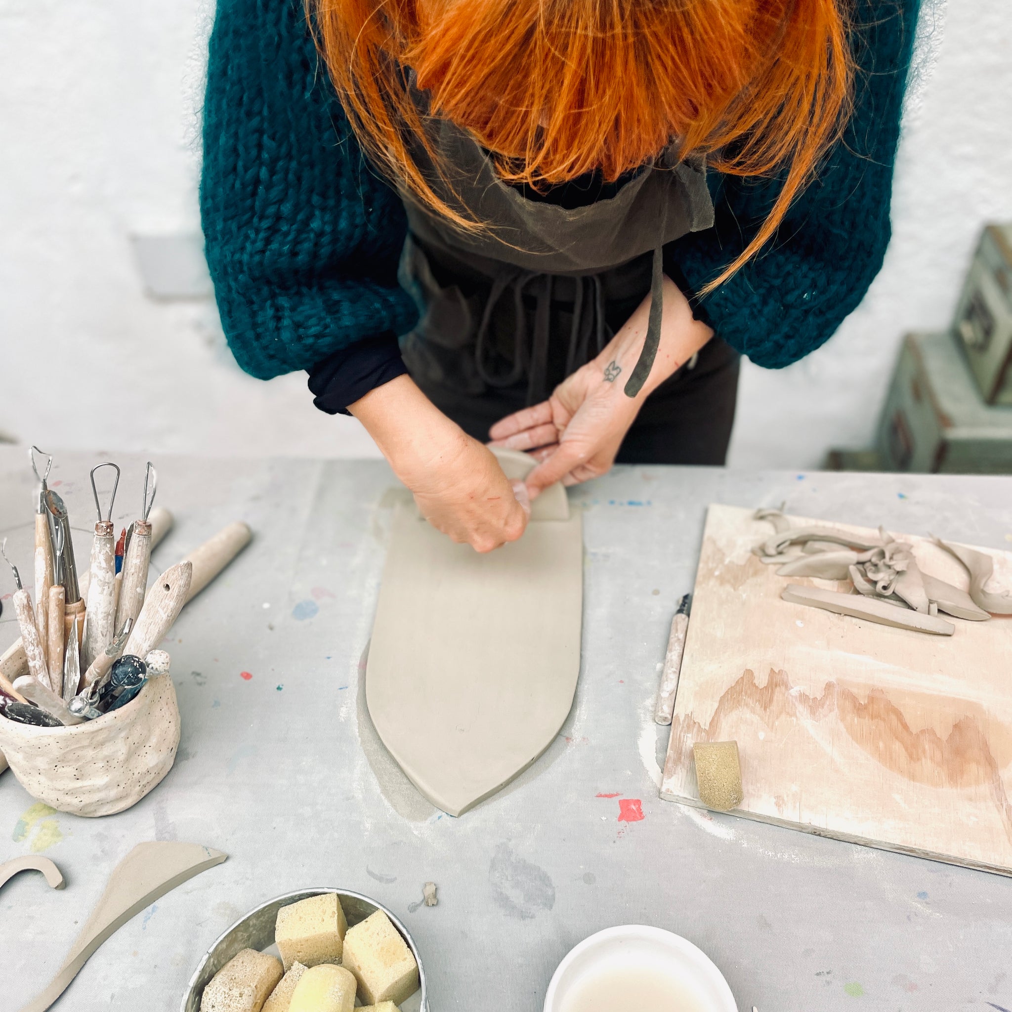Supplies: Clay, apron, tools