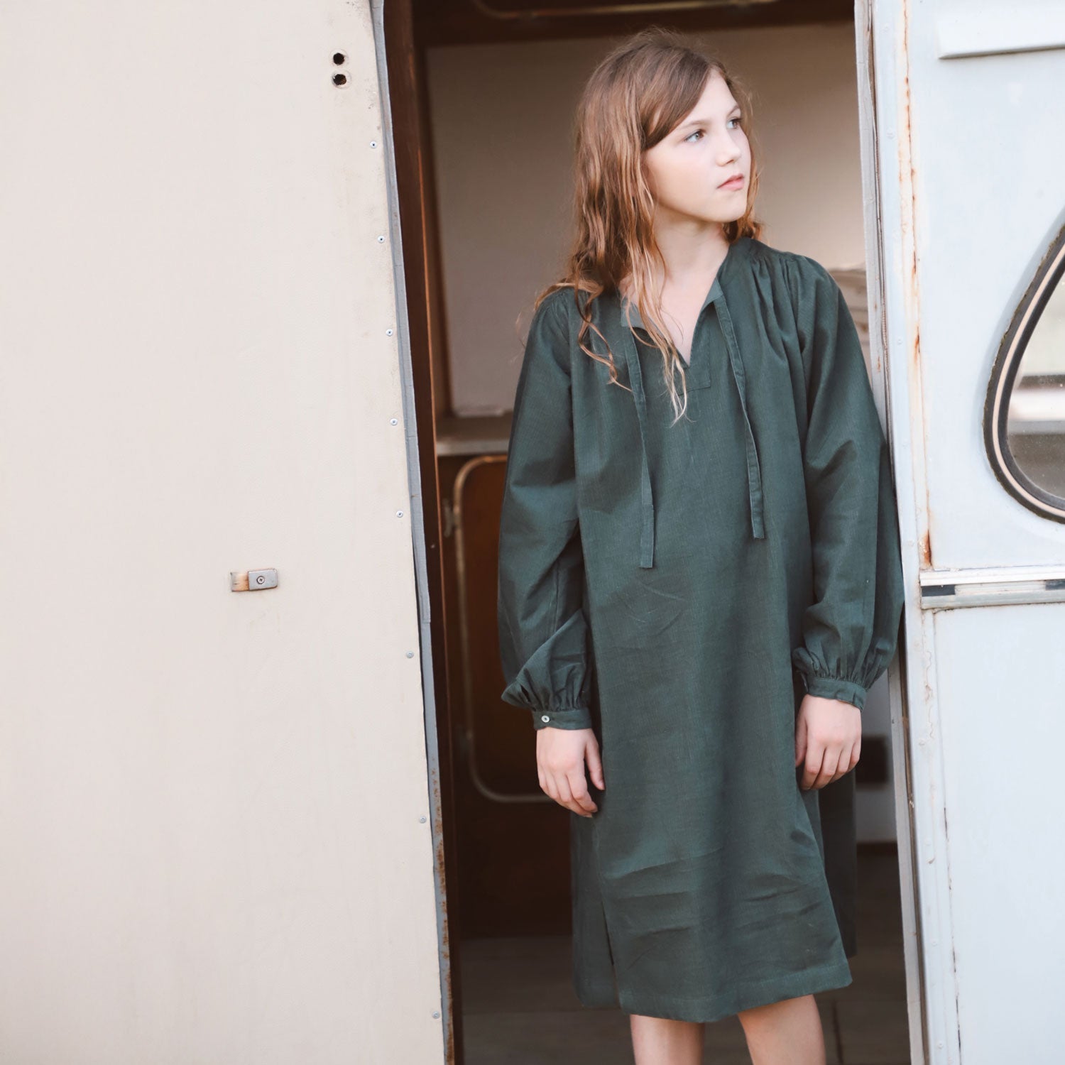 Elisa Dress - Kids - CO Cotton Corduroy - S059 Dark Teal