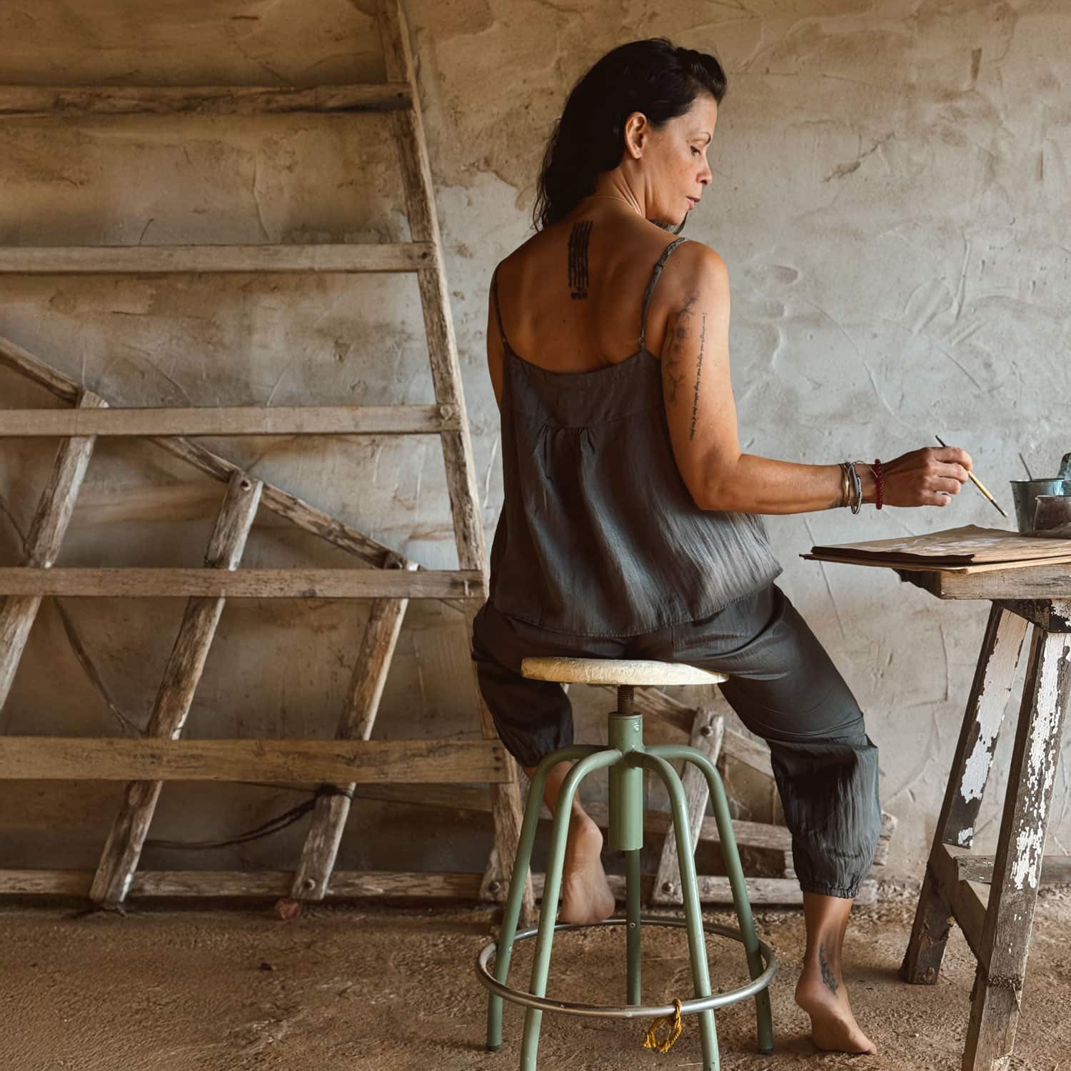Selene Top - Women - HS Habotai Silk 40 - S045 Stone Grey