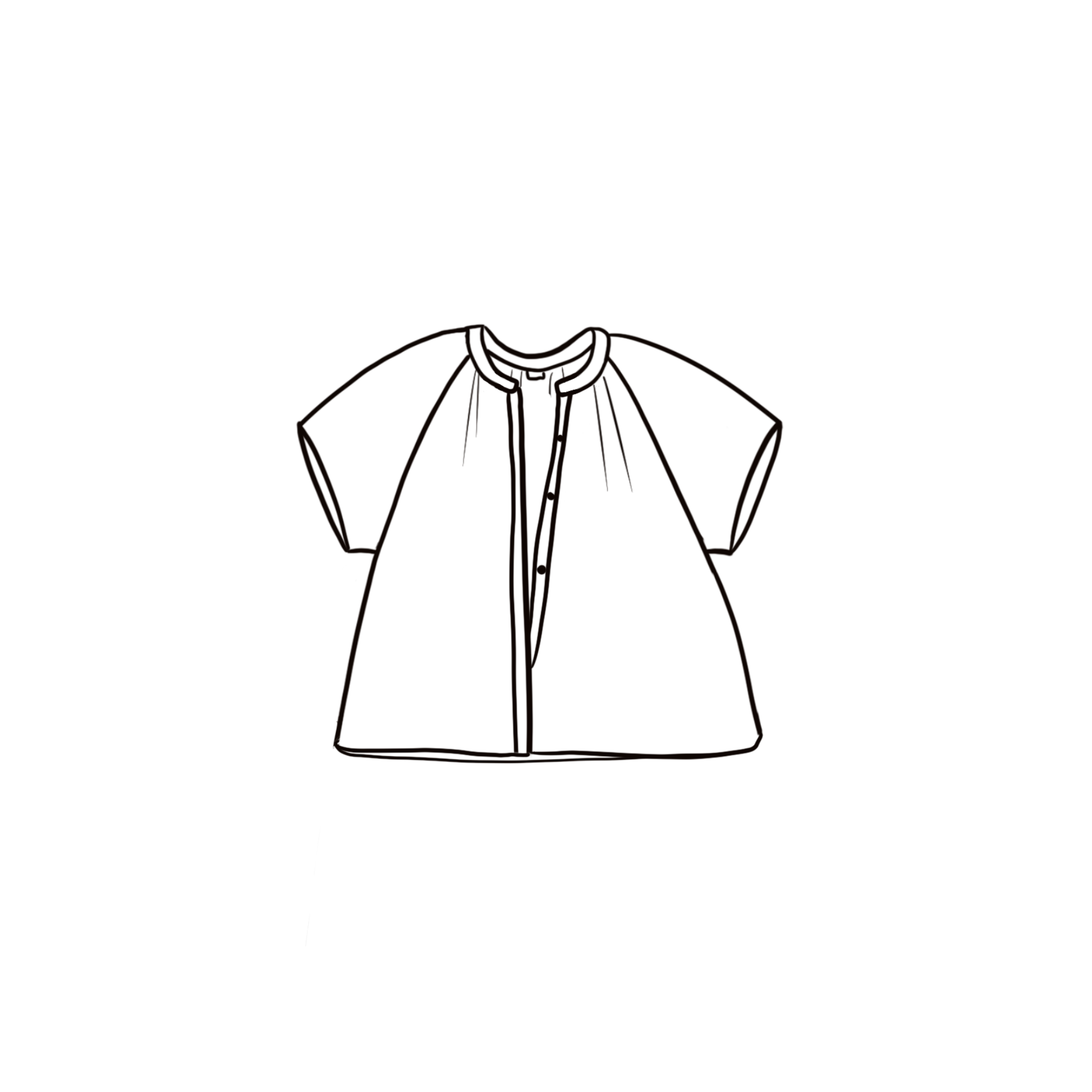 Short sleeved shirt buttoned from top to bottom with mother of pearl buttons.