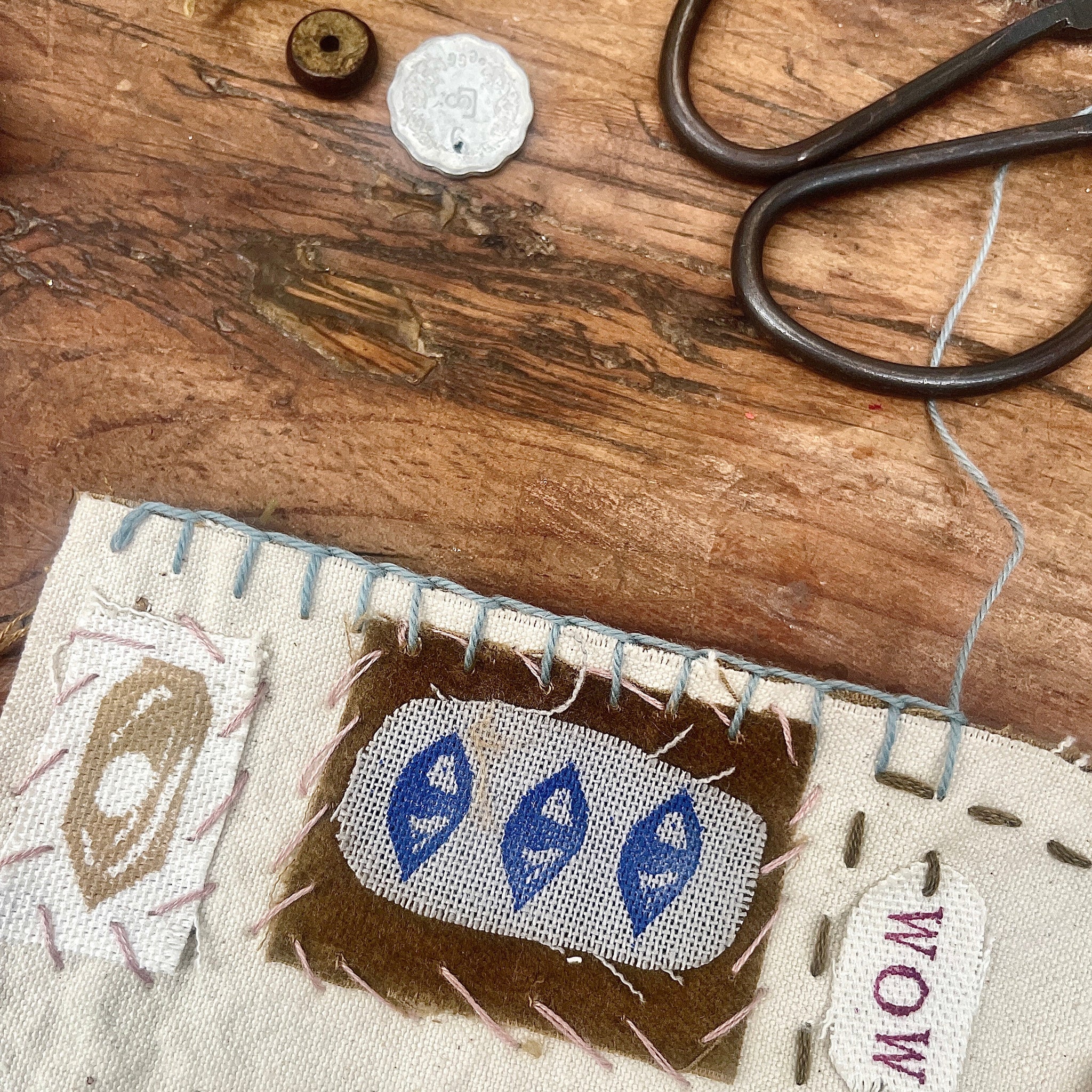 Skills Covered: You will learn about printmaking onto fabric, simple sewing techniques, and combining found objects, fabrics, and textures into a cohesive design
